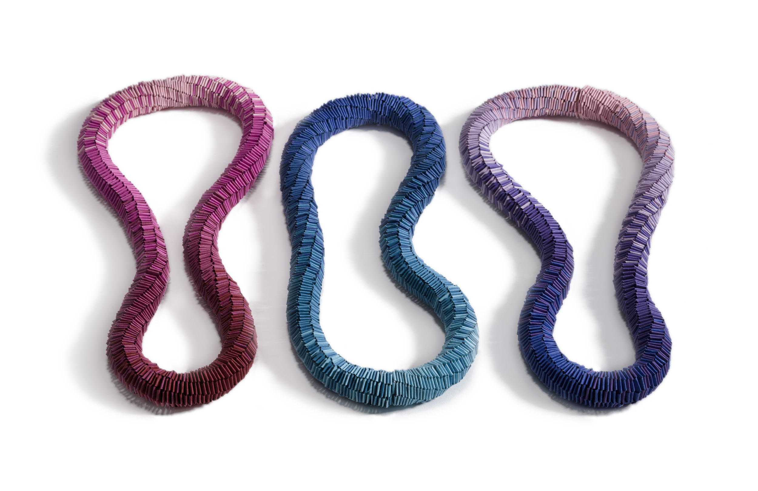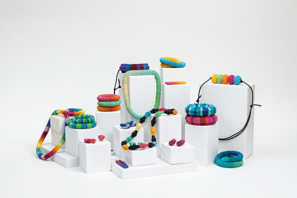 She has always played with materials and tried to transform them into something else, something beautiful. Rike loves paper because it makes for a spontaneous, creative process and it is very versatile and sustainable, feeling light and warm on the skin. Her pieces transform hand cut 2D paper strips into robust but weightless 3D paper structures, by using repetitive folding and braiding techniques.